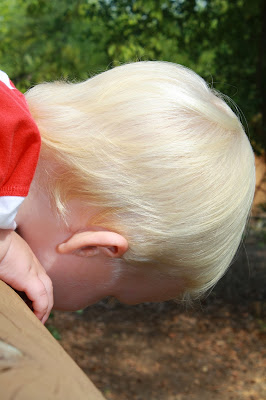 We also rode the train around the Zoo as well. Landon shouted "All aboard!" off and on throughout the ride. I don't have any pictures of this so maybe I can get some from Sherrie. The kids loved the ride and Adalyn said towards the end, "I'm hungry momma. Can we eat?" So we got off the train and made our way to the car to get the coolers and we sat in the picnic area and we all chowed down! Walking always makes me so hungry! The kids finished before we did so they walked around and found sticks. Adalyn twirled around while Landon played in the dirt underneath a table.
