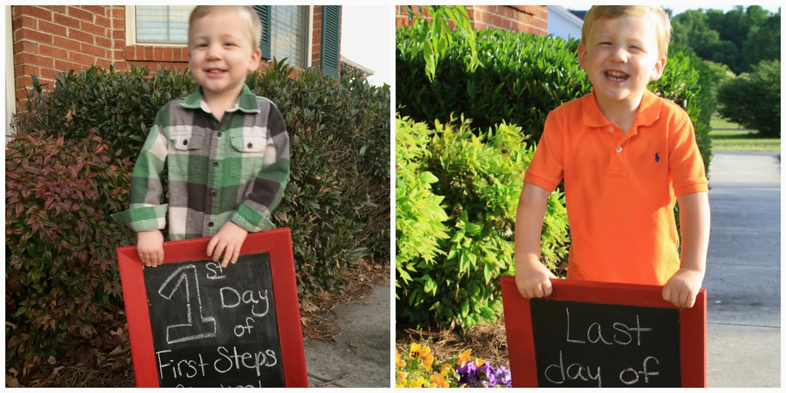 Far left is the first day of preschool in August 2013- 3 1/2 years old