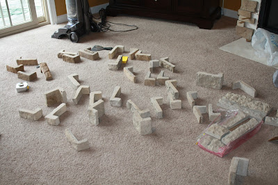 The biggest advice I can share is start on your project at the bottom and triple make sure your first line of stones is 100% level. If not, as you work your way up, they will end up being lopsided and that CAN'T happen!We opened up all the boxes and took some of the stones out to see what we were working with. It can be a little overwhelming because it will become one giant jigsaw puzzle, but if you like figuring stuff like that out, then you will love this project!